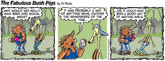 Ned Kelly’s Mobile Phone 9 No 9 in the tinniushatius “Ned Kelly’s Mobile Phone” series. Fabulous Bush Pigs Comic 2 coming out soon!Spread the word! Share this: Click to email a link to a friend (Opens in new window) Email TweetShare on Tumblr Click to share on Reddit (Opens in new window) Reddit Like Loading... Related