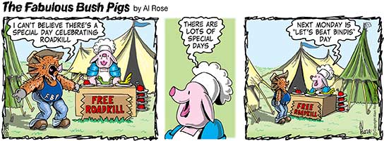 Roadkill 2 Part of the squashy Roadkill series… REMEMBER… Fab Bushies Book 5 is nearing completion…“BOMBORA The Surf Movie”! Outback surfing! Woo! Share this: Click to email a link to a friend (Opens in new window) Email TweetShare on Tumblr Click to share on Reddit (Opens in new window) Reddit Like Loading... Related