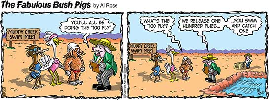 100 Fly the first “100 Fly” strip… Book 5 of the Fab Bushies, “Bombora, The Surf Movie”, is only 8 strips from completion.Over 140 strips in the finished book.Including 39 “Bombora The Surf Movie”. Share this: Click to email a link to a friend (Opens in new window) Email TweetShare on Tumblr Click to share on Reddit (Opens in new window) Reddit Like Loading... Related